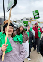 “When I first started at Butler,” said Johnson, who served as the emcee during the picket, “I felt that the respiratory department was top tier. Not that we aren’t top tier now—it’s just that we have no employees. I want to get back to better staffing, for our team and for our patients. I spoke with my boss’s upper management and had meetings with my boss’s upper management, and nothing changed. I find the fact that [the hospital doesn’t] want to communicate what’s going on, and they don’t want to work with us at all, very frightening. That’s why we are fighting so hard for a seat at the table.”